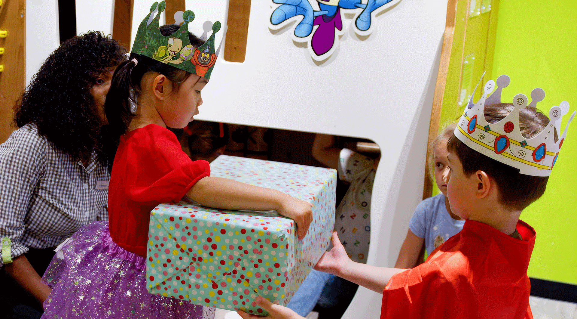 Una festa regale aspetta il festeggiato e i suoi ospiti! Vestitə da personaggi reali, balleranno, giocheranno e creeranno le loro corone festive. Alla tavola del banchetto verranno servite prelibatezze, mentre magici momenti renderanno questa festa indimenticabile.