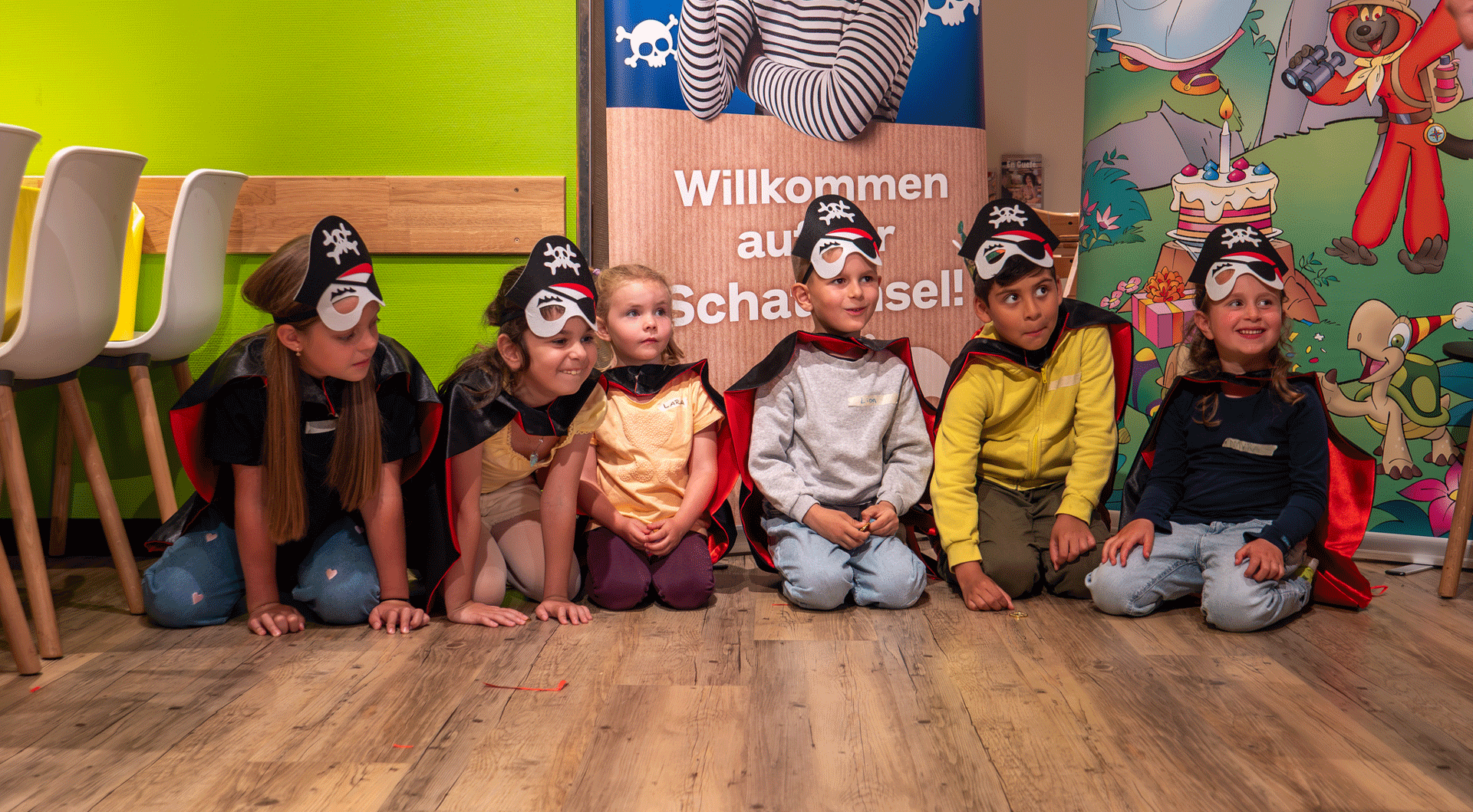 Yo ho ho e un grande ahoy! I giovani pirati salgono a bordo della nave di Tako per un’avventura entusiasmante. Con la bandiera nera issata, storie avvincenti, giochi divertenti e attività creative, tutti gli ospiti si trasformano in coraggiosə navigatorə. Capitano Barba Rossa, Lisa Dente d’Oro o Furbo il Temerario – quale nome di pirata sceglierà il vostro bambino?